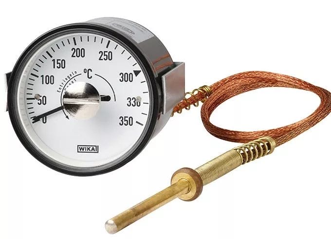 威卡(WIKA)的安全溫度控制器SB15采用電氣設計且帶有機械溫度系統,并通過(guò)液體膨脹原理檢測溫度。該充液型封閉式測量系統由溫度傳感器、毛細管和波登管組成。封閉系統中溫度傳感器受到加熱后產(chǎn)生一定的壓力,并通過(guò)毛細管傳輸到波登管,然后通過(guò)指針偏轉顯示在表盤(pán)上。安裝在指針軸上的撥盤(pán)會(huì )在溫度達到不可調切換值時(shí)或毛細管斷開(kāi)或堵塞時(shí)觸發(fā)微動(dòng)開(kāi)關(guān),從而將系統鎖定在當前狀態(tài)。只有當系統溫度降低了約設置開(kāi)關(guān)點(diǎn)的3%以后,才能進(jìn)行復位操作。