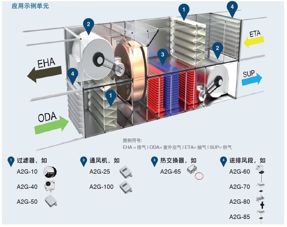 差壓表、差壓開(kāi)關(guān)和差壓變送器可用于檢測過(guò)濾器和通風(fēng)機。空氣流量計和流速變送器適用于測量空氣風(fēng)管和空調系統中的空氣流量和流速。使用一個(gè)額外的防霜溫控器可監控空氣溫度,防止熱交換器被凍壞。此外,數字通風(fēng)管溫度傳感器和通風(fēng)管溫濕度傳感器可用于測量通風(fēng)和空調系統中的溫度和濕度。
