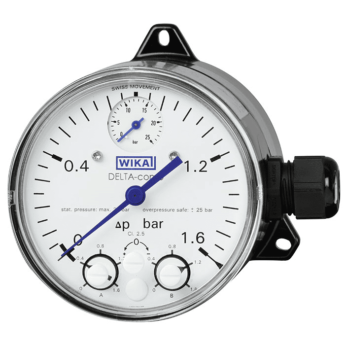 當差壓必須就地顯示,同時(shí)電路需要通過(guò)設定的差壓進(jìn)行安全開(kāi)關(guān)時(shí),則可選用DELTA-comb系列產(chǎn)品。當壓力高于或低于設定值時(shí),開(kāi)關(guān)啟動(dòng)。