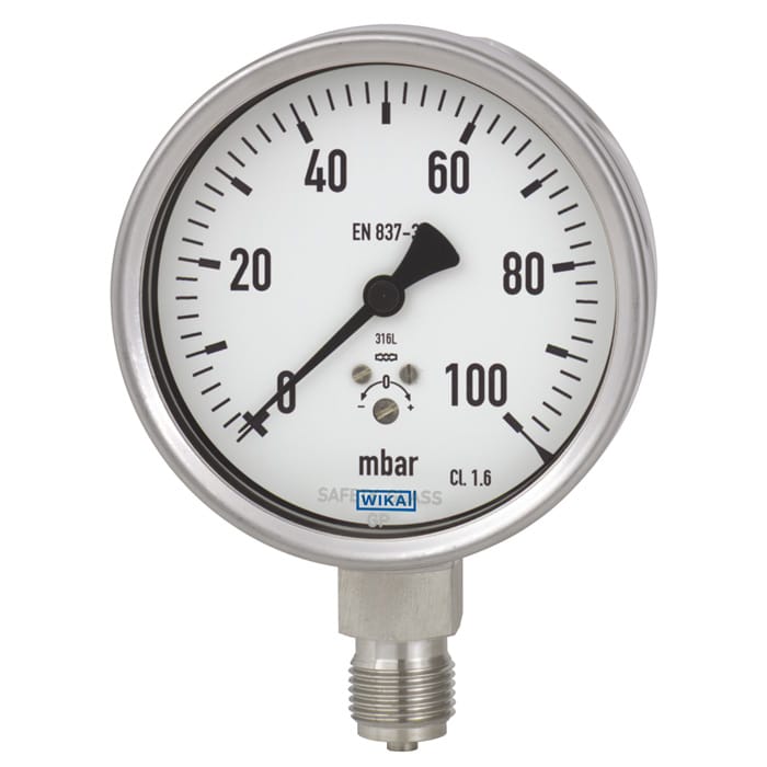 632.50型膜盒壓力表由全不銹鋼制造,因此特別適用于過(guò)程工業(yè)的應用。它們基于成熟的膜盒測量系統,增壓時(shí),膜盒元件根據進(jìn)入壓力的變化,進(jìn)行同比例變形產(chǎn)生位移,位移變化傳輸至機芯測量機構,并在表盤(pán)上通過(guò)指針顯示。
